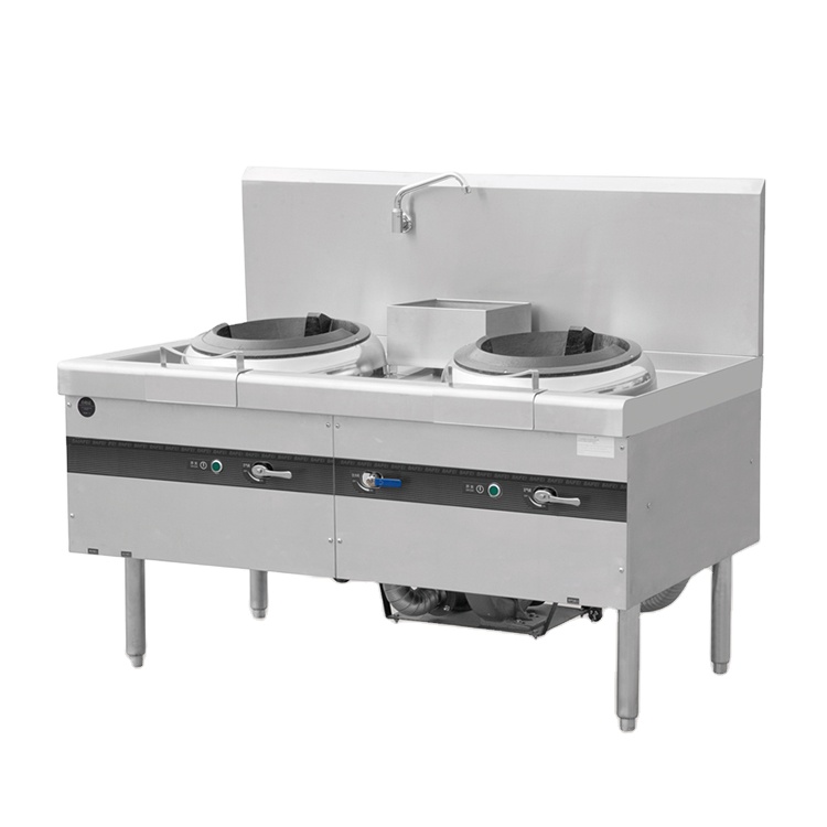1. Completely SS body structure 2. Adjustable S/S feet and convenient for install 3. One piece worktop, no leakage 4. Environment pre-mix burner, brass material with anti-deformation ,High temperature corrosion resistance, fast thermal conductivity 5. Pre-mix combustion with heavy power and low noise. combustion noise < 65dB 6. Set up stand pilot fire, one button electronic ignition operation. 7. Solenoid safety gas valve controller